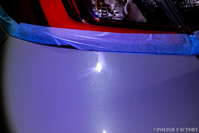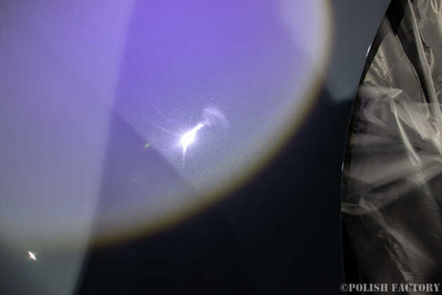 こちらはリアバンパー部の機械磨きの跡です。