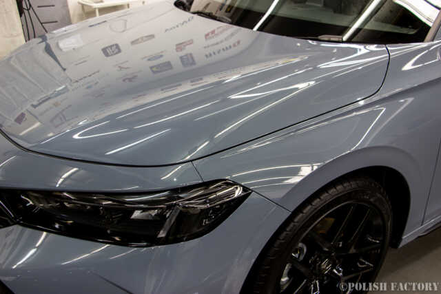 ホンダシビックRSという素晴らしい車両に施工できたことを光栄に思います。特にグレー色の車体は傷や汚れが目立ちやすいため、下地処理に時間をかけ、完璧な状態でコーティングを行いました。S様に喜んでいただけて嬉しく思います。