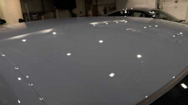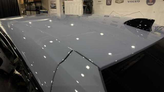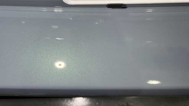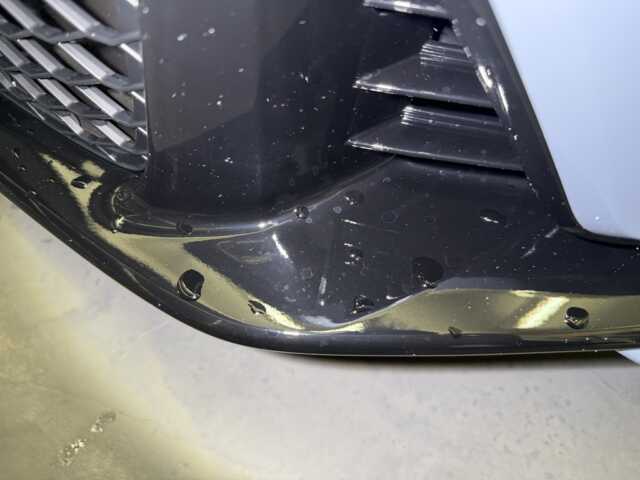 施工後は、上品なソニックグレー・パールをより強調させつつ強靭なコーティング施工実現しました。水滴の付着も極めて少なくなり、撥水性も大幅に向上しています。