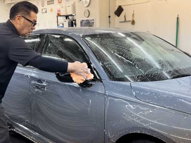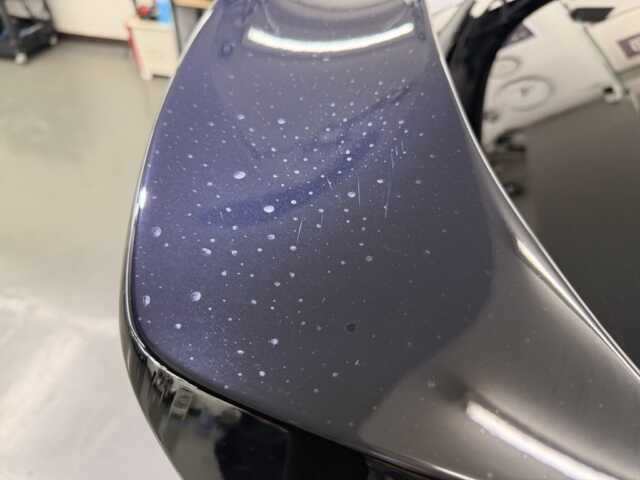弊社のようなコーティング専門店の新車における本来のメイン作業はもちろんコーティング。なのですが、軽く洗ってさーコーティング!というわけにはいきません。上記のようなシミや、ノリ跡がどんな車も何かしらあるのが常ですので新車であっても徹底洗浄が必要です〜
