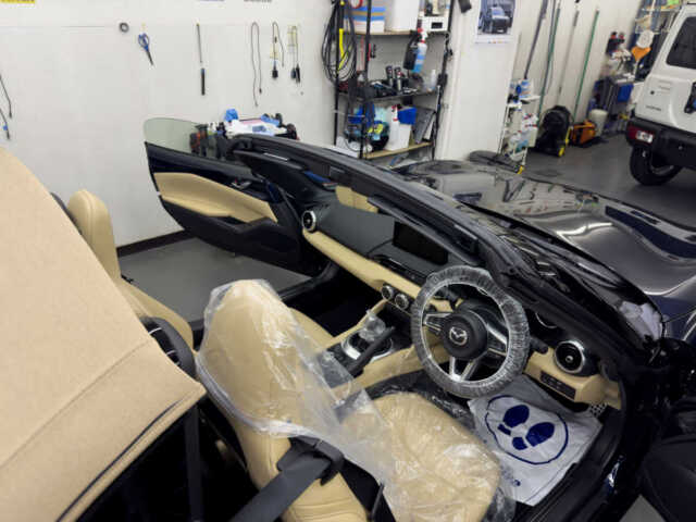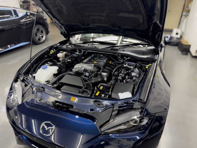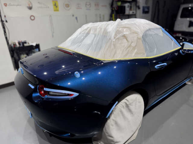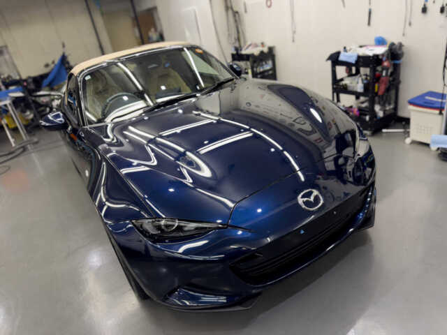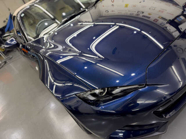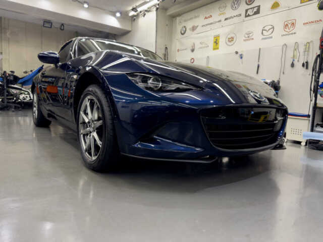 マツダロードスターという素晴らしい車両に施工できたことを光栄に思います。特に黒色の車体は傷や汚れが目立ちやすいため、下地処理に時間をかけ、完璧な状態でコーティングを行いました。K様に喜んでいただけて嬉しく思います。