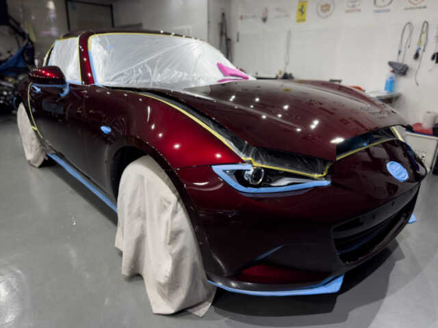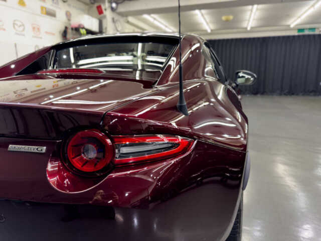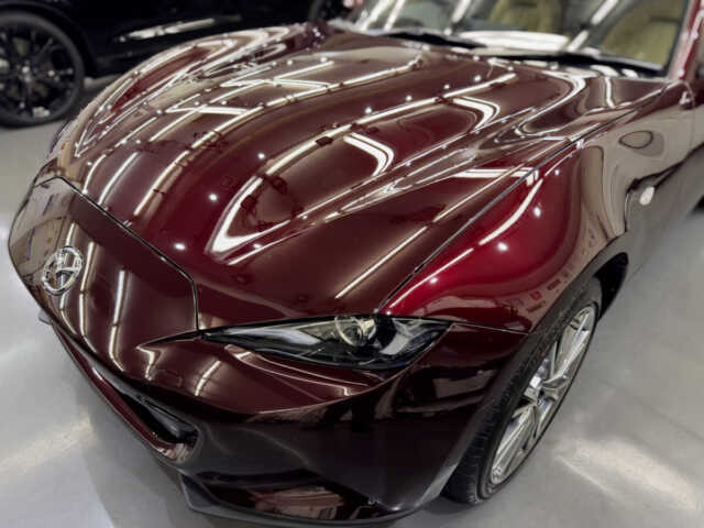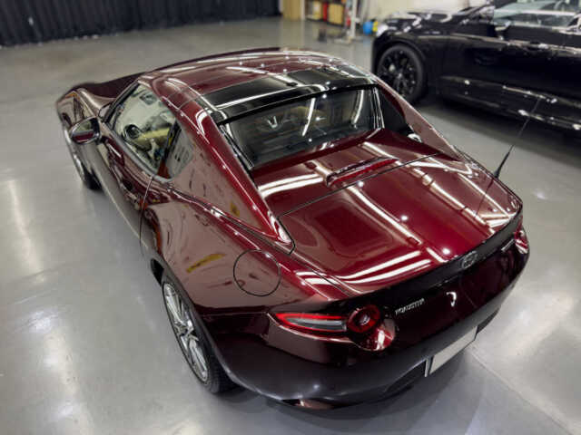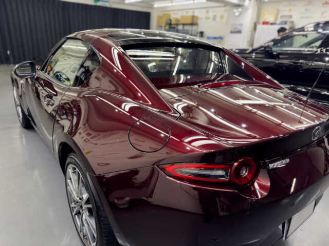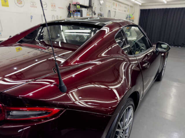 マツダロードスターRF 35周年記念車という素晴らしい車両に施工できたことを光栄に思います。特に特別色の車体は傷や汚れが目立ちやすいため、下地処理に時間をかけ、完璧な状態でコーティングを行いました。H様に喜んでいただけて嬉しく思います。