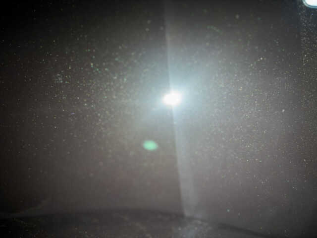 新車ではありますが、輸送時や展示中についた微細な傷や汚れが見られました。また、新車時に磨かれた機械磨き修復の跡も確認されました。