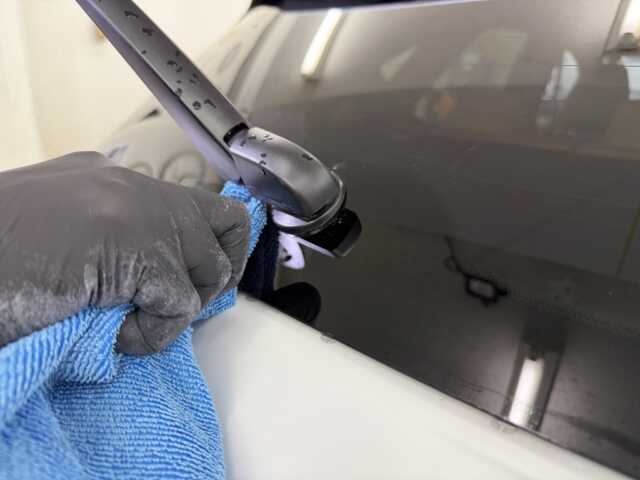 まずはウインドウの油膜除去&シミ除去からスタート!リアワイパーの周辺もきっちり油膜除去します。
