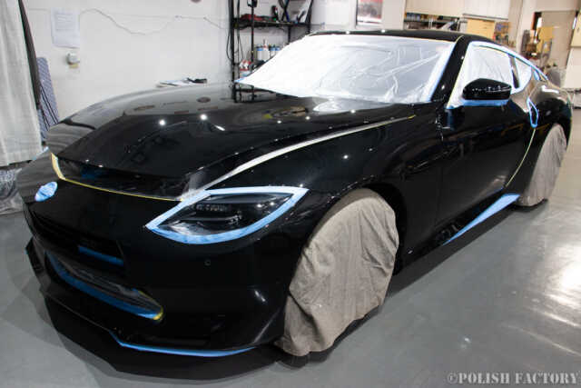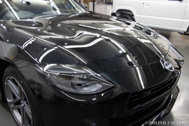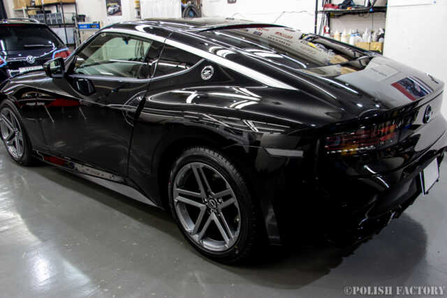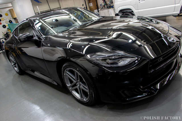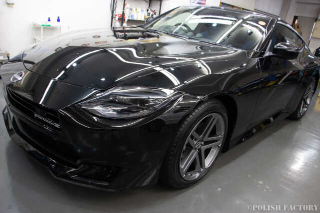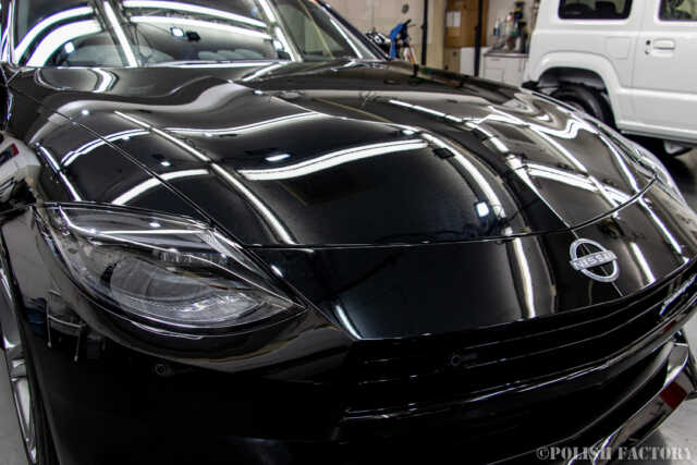 フェアレディZという素晴らしい車両に施工できたことを光栄に思います。特に黒色の車体は傷や汚れが目立ちやすいため、下地処理に時間をかけ、完璧な状態でコーティングを行いました。T様に喜んでいただけて嬉しく思います。
