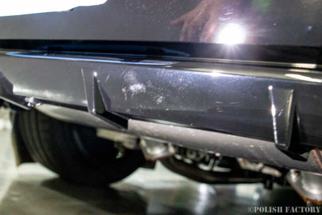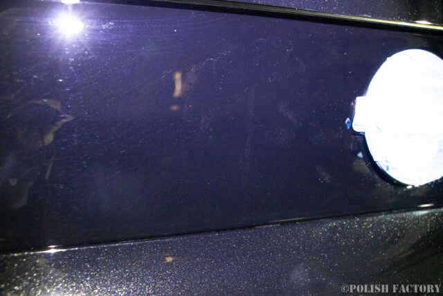 新車ではありますが、輸送時や展示中についた微細な傷や汚れが見られました。また、新車時に磨かれた機械磨き修復の跡も確認されました。