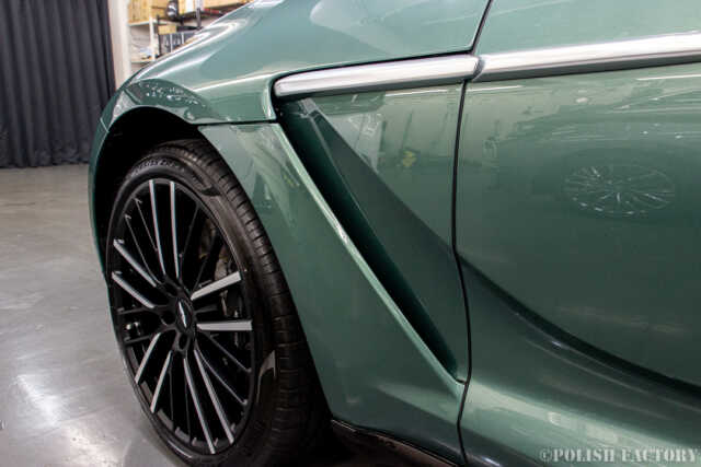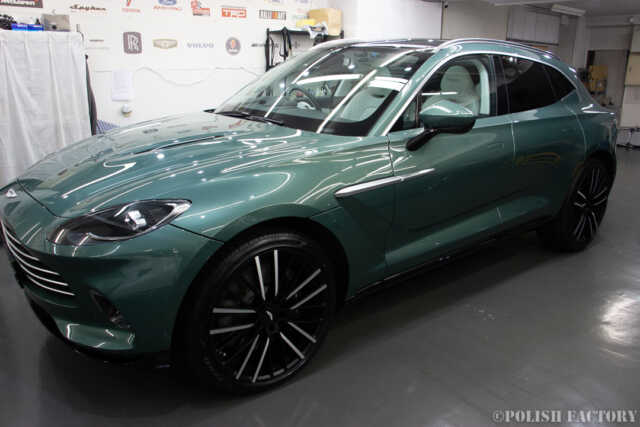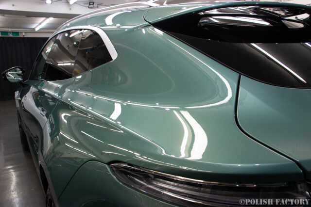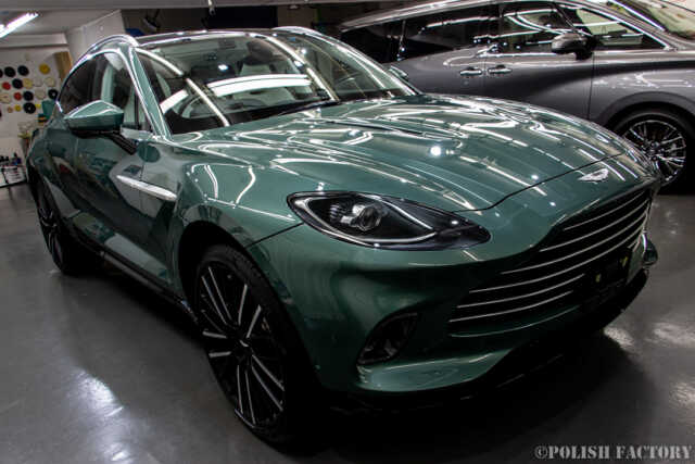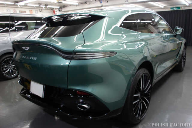 アストンマーチンDBXという素晴らしい車両に施工できたことを光栄に思います。特にグリーン色の車体は艶低下が目立ちやすいため、下地処理に時間をかけ、完璧な状態でコーティングを行いました。H様に喜んでいただけて嬉しく思います。