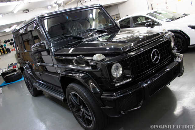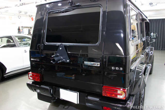メルセデスベンツ G63AMGという素晴らしい車両に施工できたことを光栄に思います。特に黒色の車体は傷や汚れが目立ちやすいため、下地処理に時間をかけ、完璧な状態でコーティングを行いました。S様に喜んでいただけて嬉しく思います。