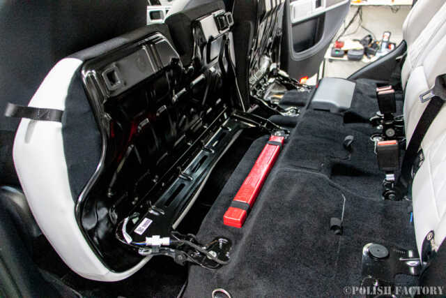 重いスペアタイヤを外し この裏側も磨きとコーティングをいたします!!