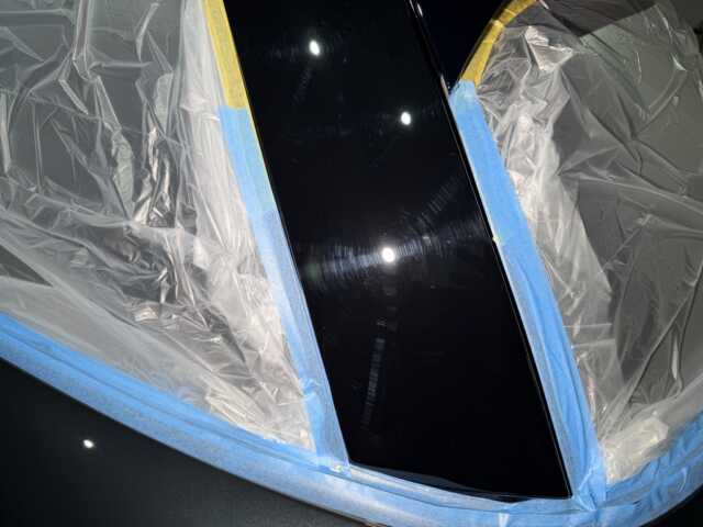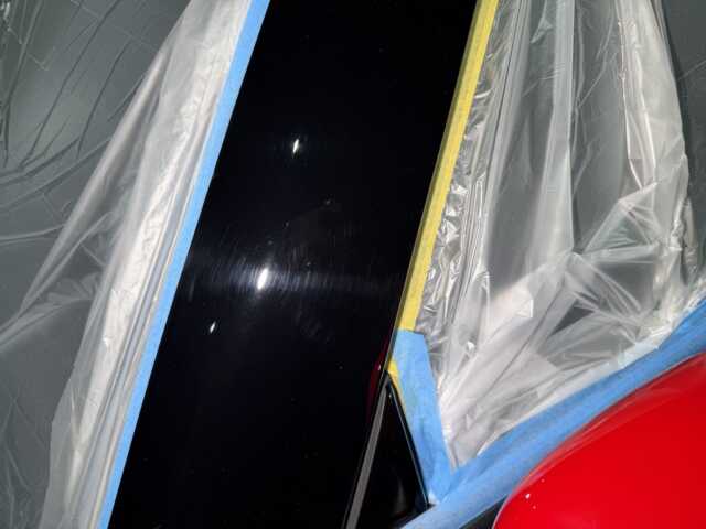 ピラーの線傷。せっかくの真っ黒お色が白ぼけておりました・・・