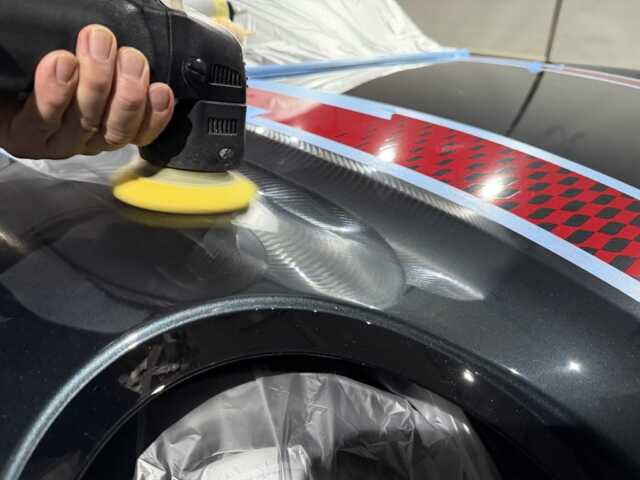 こういう丸みを帯びたフードを磨く際は注意が必要です。ポリッシャー、バフ、コンパウンド選びも慎重に行います。