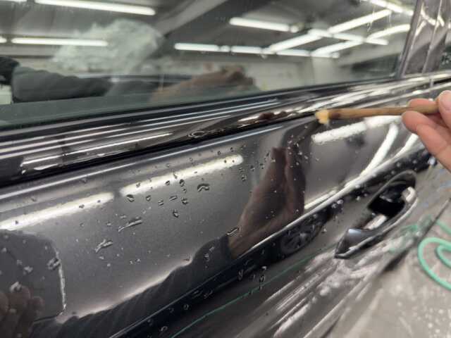施工後は、ブラックサファイアの美しさが一段と際立ち、塗装本来の深い艶が実現しました。水滴の付着も極めて少なくなり、撥水性も大幅に向上しています。