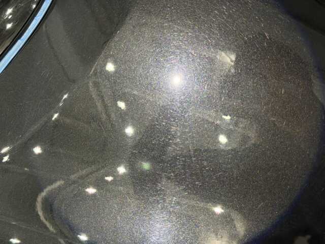 ご覧の通り、本来黒い塗装が無数の傷により、少しグレーのような白ぼけをしております。弊社の場合は根本的な治療として研磨にてこれらを真っ黒にしてますが、ひどいお店は研磨せず傷を隠すケミカルやWAX等を使用。これは諸刃の剣ですのですぐに元通りになってしまいます・・ので当社ではまやかしの液剤は一切使用しません(笑)