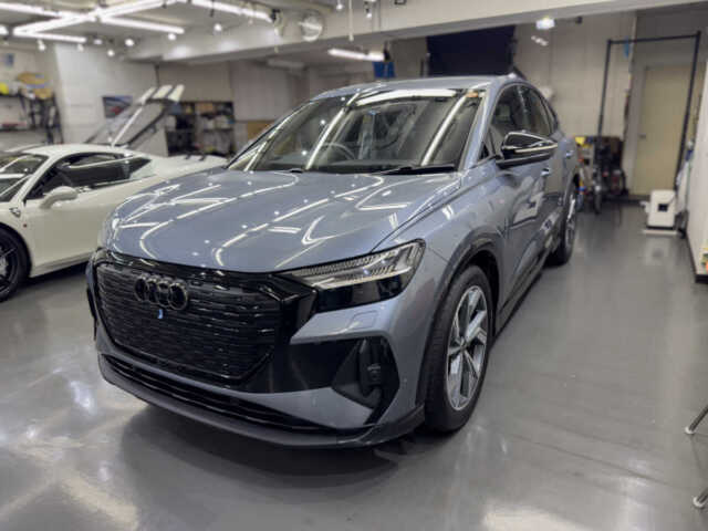AUDI Q4e-tronという素晴らしい車両に施工できたことを光栄に思います。特に黒色の車体は傷や汚れが目立ちやすいため、下地処理に時間をかけ、完璧な状態でコーティングを行いました。A様に喜んでいただけて嬉しく思います。