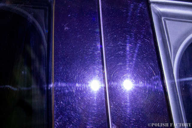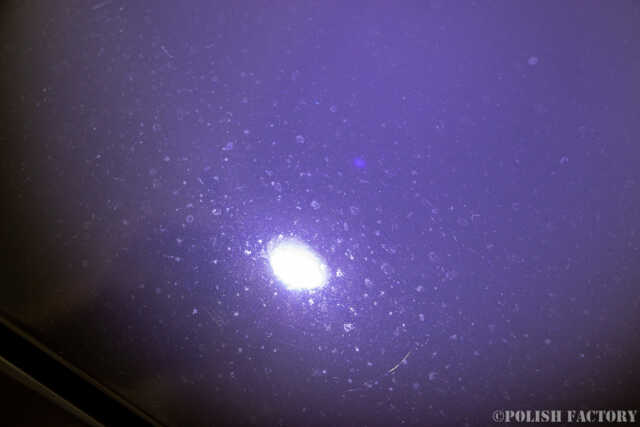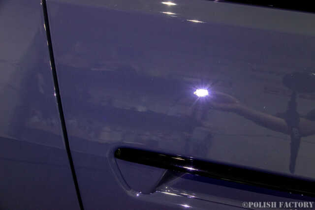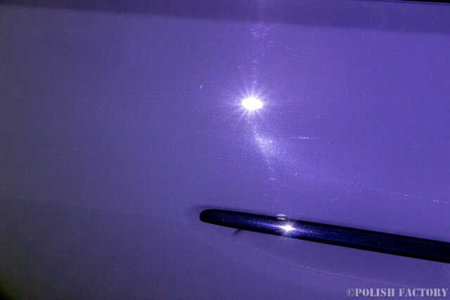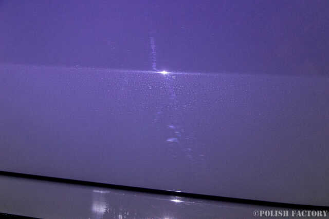 新車ではありますが、ディーラーなのかPDIなのか、いずれにしても磨かれた機械磨き修復の跡も大きく多数確認されました。昔のディーラーは一生懸命さを感じましたが、「輸入してほしい人にさっさと売って利益を上げるだけ」何かっ? という姿勢に私は大いに疑問です。