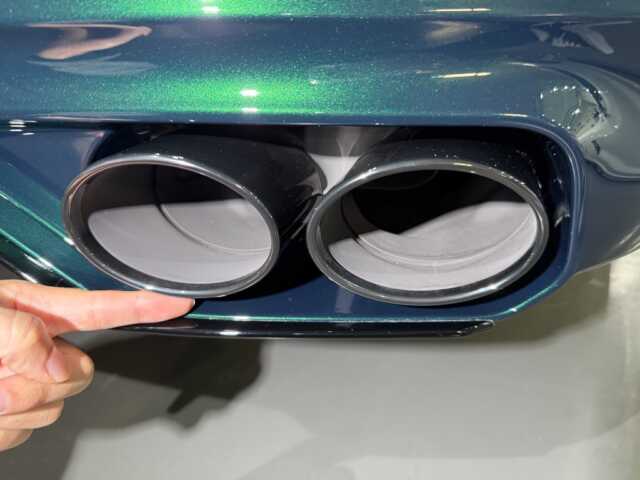 マフラー下部も結構な確率で汚れが固着してます。汚れやすい部分ですのでこちらもコーティングでしっかり保護します。