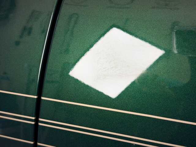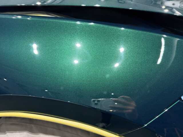 わかりますでしょうか〜 アルピナの綺麗なグリーンのはずが傷が多く白く見える感じ。。拡大すると、、、