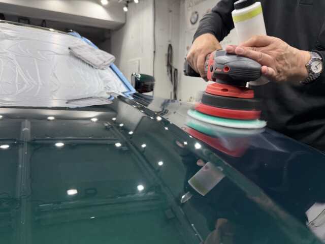 丁寧に下地調整後は脱脂洗浄を行い、最上級BLACKセラミックコーティングへ!
