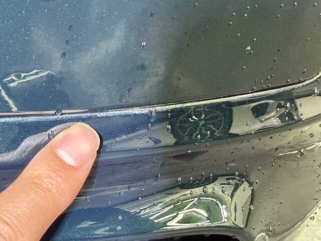 こちらは新車ご納車前によくディーラーなどで良かれとサービスでされる簡易コーティングのムラです。結構目立つ箇所にたくさんありましたです。。。