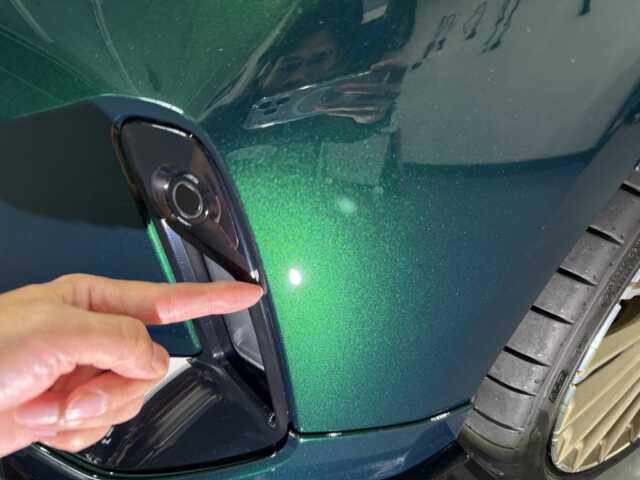 こちらは輸入車の場合ほぼ100%納車前にどこかで研磨がされますが、その際に研磨作業が雑なことが多く、目の届きにくいFバンパー周辺などはこのような研磨の痕跡があったりします。もちろんこれは指で触るだけでは全く取れませんー泣(まぁほとんど雑なんですけどね・・・)