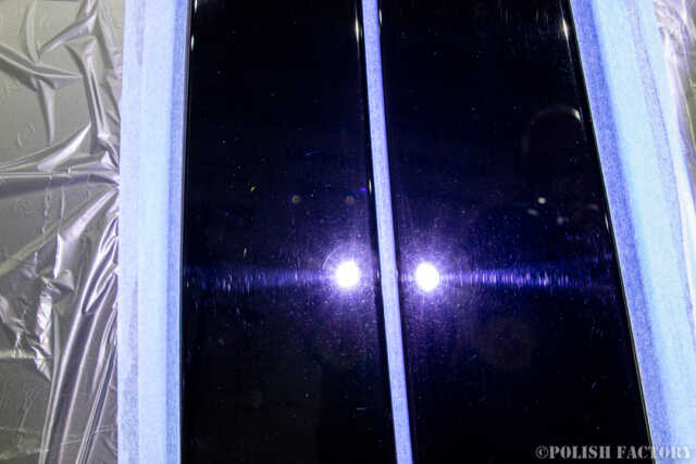そのさ歴然ですね、この下地調整の段階でこれほどの艶の差が出るのです。こういう部分をも基本的にはやらない大手洗車店のコーティングはコーティングと言えますでしょうか・・・・