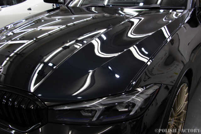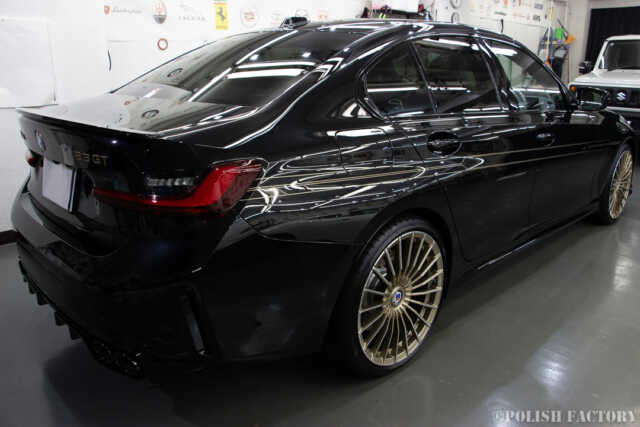ALPINA B3GT Limousineという素晴らしい車両に施工できたことを光栄に思います。特に黒色の車体は傷や汚れが目立ちやすいため、下地処理に時間をかけ、完璧な状態でコーティングを行いました。M様に喜んでいただけて嬉しく思います。