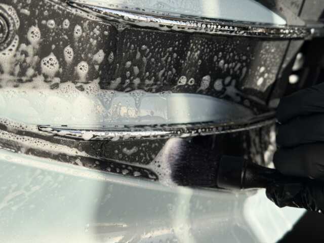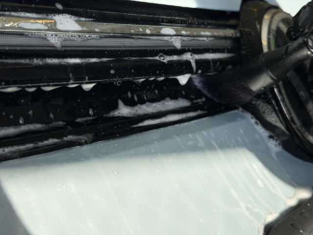 下記Before画像の通り、未塗装の樹脂は割と傷んでいる印象、洗車前でもはっきりとわかる線傷が無数についている感じでございました〜