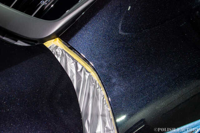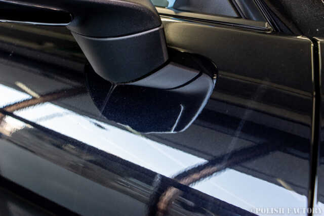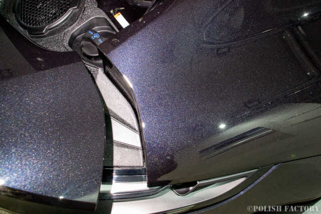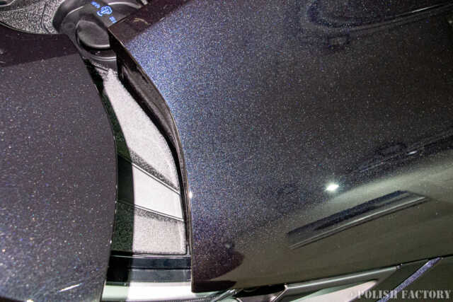 施工後は、ジェットブラックメタリックの美しさが一段と際立ち、塗装本来の深い艶が実現しました。水滴の付着も極めて少なくなり、撥水性も大幅に向上しています。