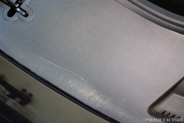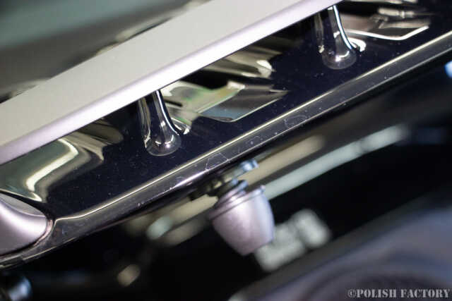 メーカーかディーラーでの作業でついた機械磨きの跡。