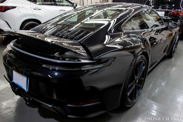 ポルシェ911GTS(992.2)という素晴らしい車両に施工できたことを光栄に思います。特に黒色の車体は傷や汚れが目立ちやすいため、下地処理に時間をかけ、完璧な状態でコーティングを行いました。S様に喜んでいただけて嬉しく思います。