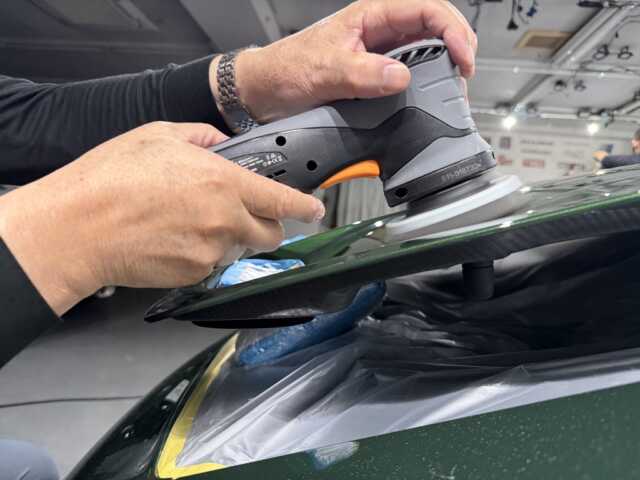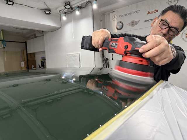 ボンネットは非金属。「勘」で磨くことは出来ませんので丁寧に状態を把握し、当社で下地調整を危険無く行います。