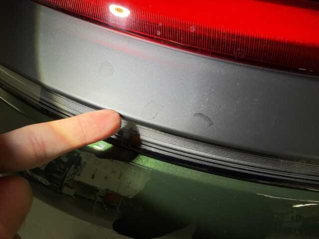 納車直後にお持ち込みいただきましたお車ですが、よ〜〜く見るとシミがボンネットやウイングにて発見できました〜。