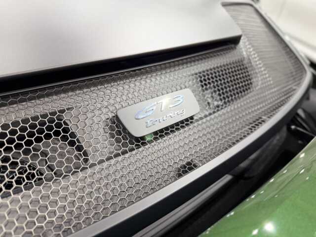 フロントリップの樹脂部に刻まれた「GT3」の文字が堪りません。ぱっと見は普通のポルシェ?なのにみる人が見ると、、恐ろしいお車です。