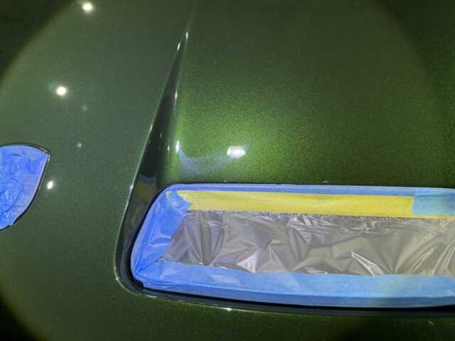 その後水気を飛ばし完全乾燥後マスキングテープを貼り養生を完全にしてから下地調整磨き開始です。