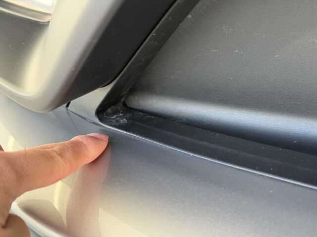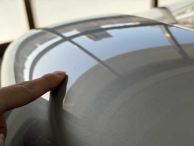 くっきりと保護フィルムの糊の跡が・・・。ディーラーは知らないんだろうなあ。。。