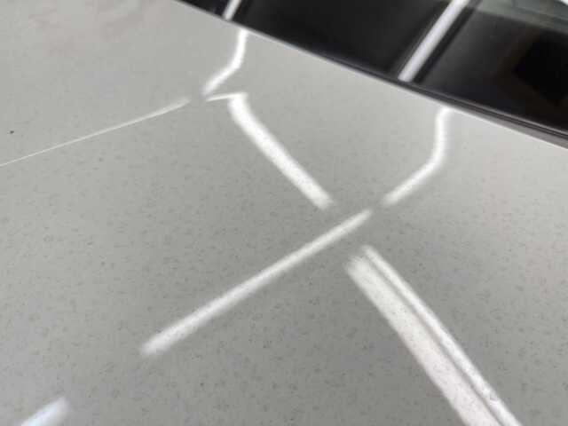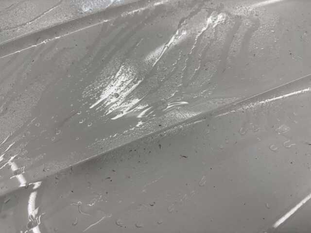 施工後は、黄色みのなくなったぷるんとした純白に!そして強靭なコーティング施工実現しました。水滴の付着も極めて少なくなり、撥水性も大幅に向上しています。