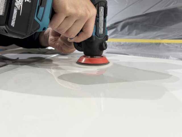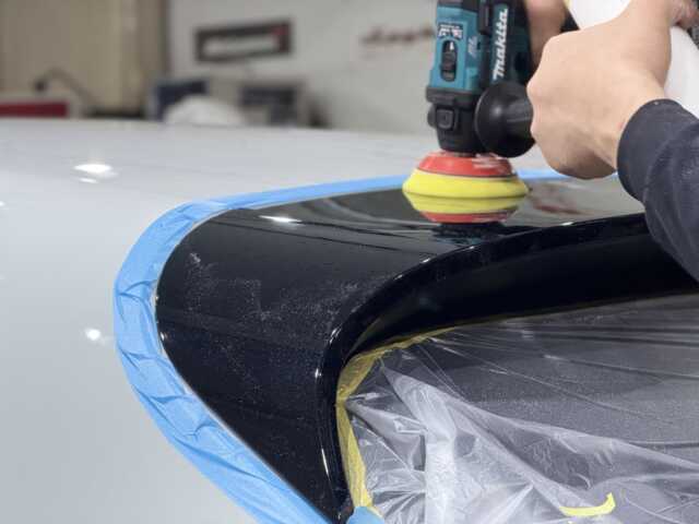 1日半?研磨したらいざコーティングへ。コーティングもボディだけで半日〜1日。一度も気が抜けません。時間をただかければ良いコーティングとはなりませんが、良い下地処理、良いコーティングのために相応の時間は経験上必ず必要です。