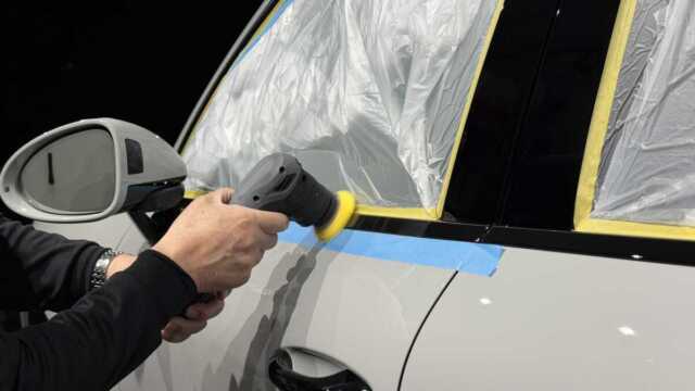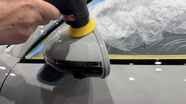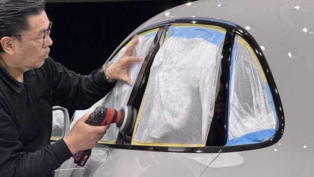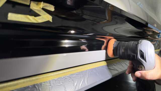 フルマスキングをしたら研磨開始!マスキングをみればお店の愛情技術レベルがわかるかもしれません(笑) 。個人的にはマスキングを丁寧に行なっていない、もしくは全くしていないお店に大事な車は任せられませんねぇ〜
