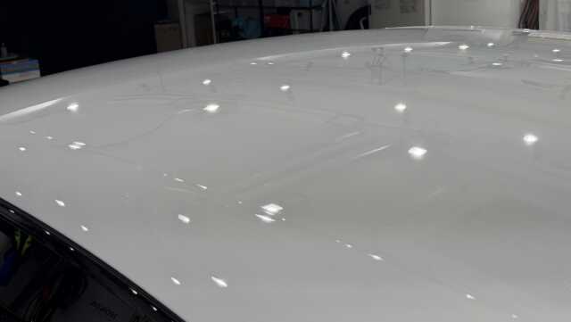 ボンネットも微細な研磨傷で本来の塗装状態が10だとした場合6点くらいの仕上がり。ポリッシャー、バフ、コンパウンド、圧力、回転全てに神経を注ぎます。