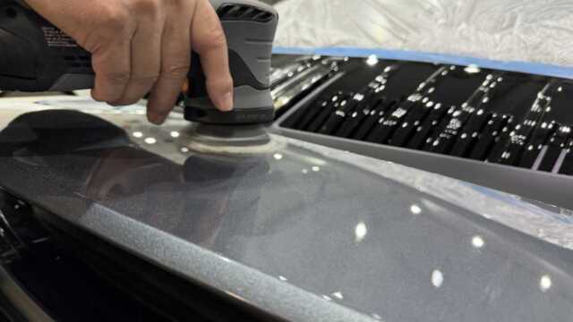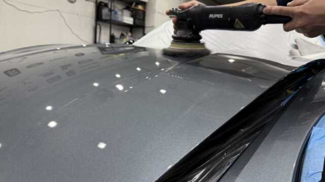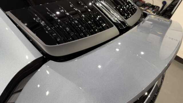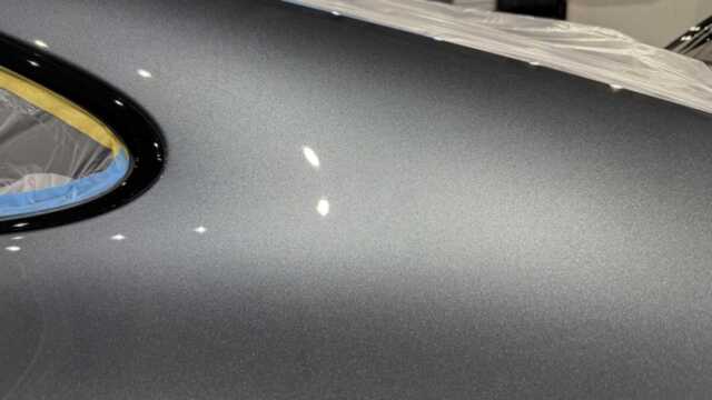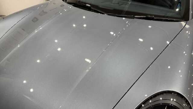 施工後は、バナジウムグレーメタリックの艶感が一段と際立ち、ヌルテカボディが実現しました。水滴の付着も極めて少なくなり、撥水性も大幅に向上しています。
