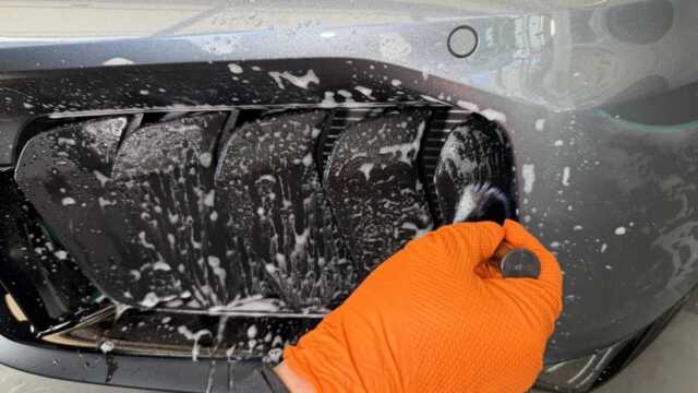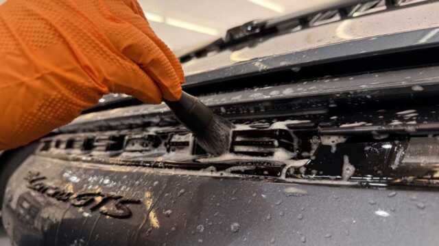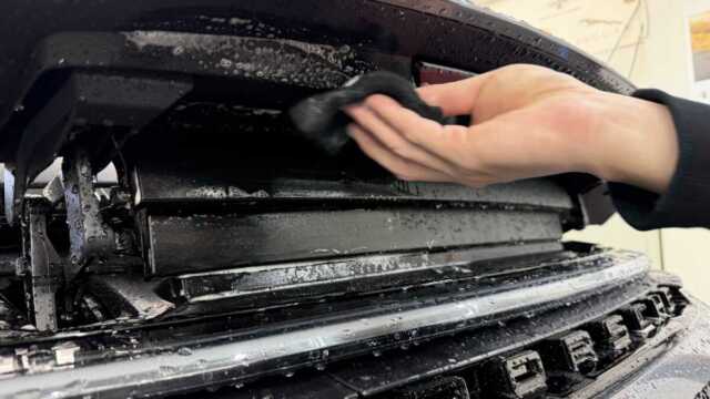 ピアノブラック素材がありますので慎重に道具を選択して洗浄します。F周りの洗浄でもこだわるべきポイントが多数ございます。