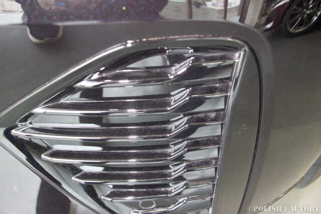エンブレム周辺のコンパウンドのカラミとか汚れの堆積などを取り去りましてコーティングを行いました。