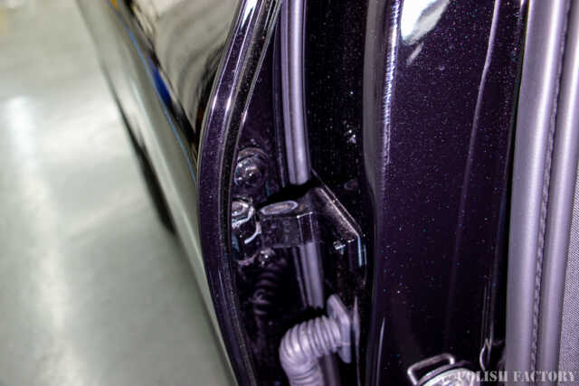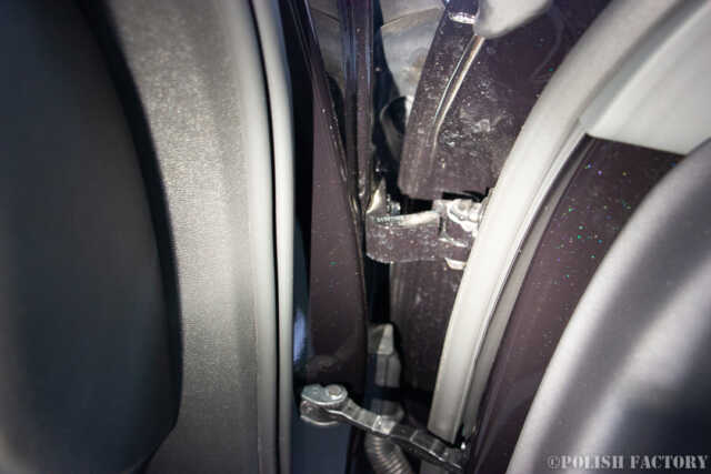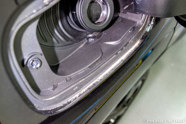 隙間にはディーラーでついたと思われる磨き粉(コンパウンド)の残りが至る所にありました。