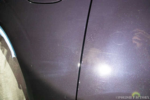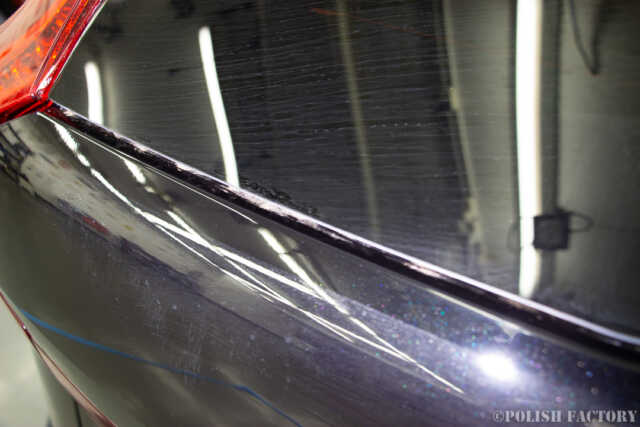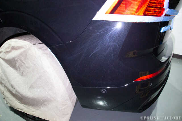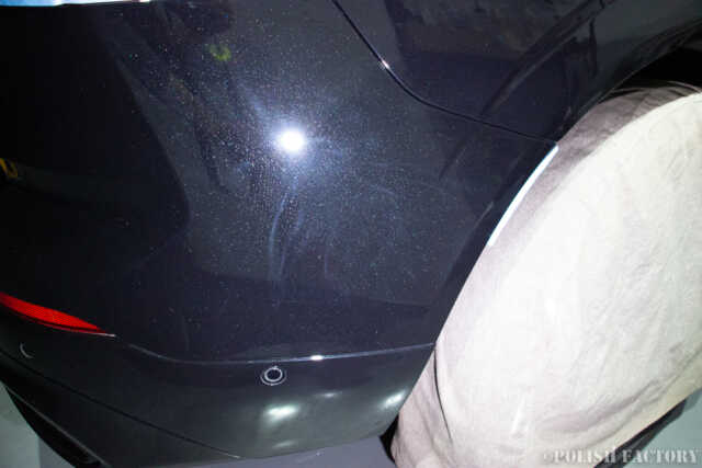 こちらはリアバンパー部の磨き傷「オーロラ傷」です 機械磨きでついた磨きの跡です。